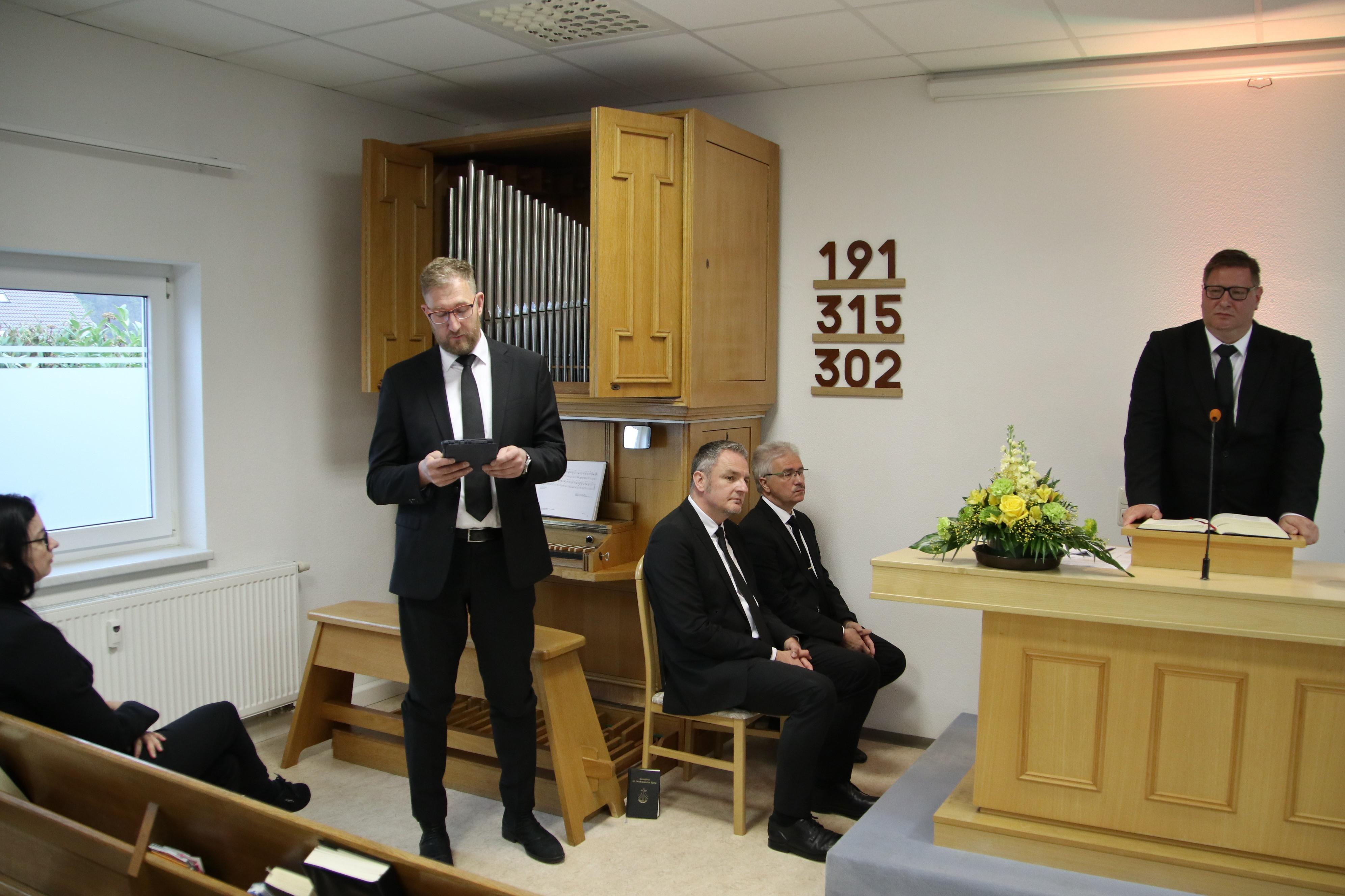 Das Eingangslied des Gottesdienstes lautete „Nimm Jesus in dein Lebensschiff“. Das Textwort wurde aus Matthäus 8, Vers 25 und 26 entnommen und von Bezirksvorstehervertreter Frank Wosnitzka aus Saalfeld vorgetragen. Im Anschluss an das Textwort wurde das Lied „Herr sei vor uns und leite uns“ gesungen. Die Bibellesung erfolgte aus Lukas 8, Verse 21 bis 25, worauf das Lied „Auf den Wellen tanzen“ folgte.